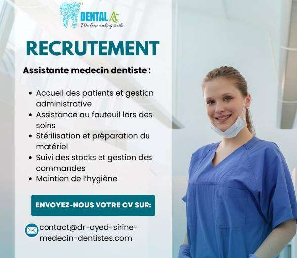 Pour postuler, envoyez votre CV et votre lettre de motivation par e-mail à contact@dr-ayed-sirine-medecin-dentistes.com