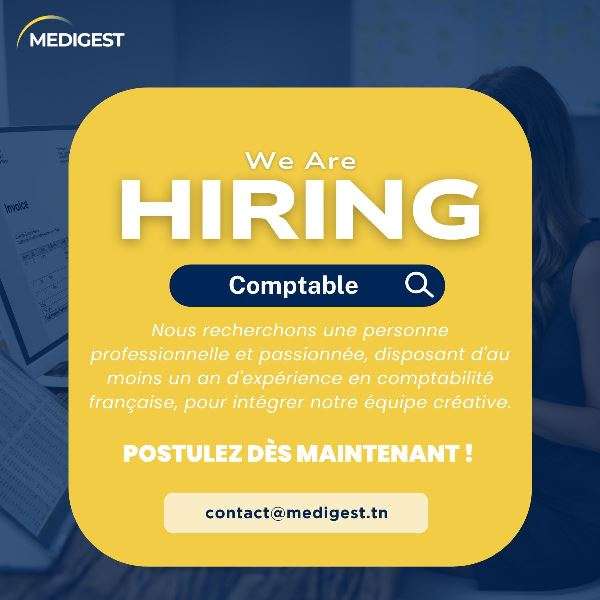 Pour postuler, envoyez votre CV et votre lettre de motivation par e-mail à contact@medigest.tn