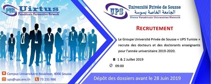 Dans le cadre de renforcement de son équipe pédagogique, l’Université Privée de Sousse (UPS Tunisie)