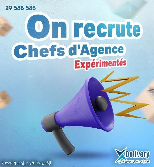 Nous recherchons 2 chefs d’agence expérimentés dans le domaine de la livraison, pour rejoindre notre équipe, avec des postes à pourvoir à Nabeul et à Tunis.