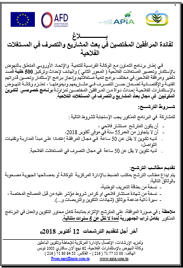Dans le cadre du Programme de Relance de l’Investissement et la Modernisation des Exploitations Agricoles PRIMEA fiancée par l’AFD et l’UE, des accompagnateurs spécialisés en création de projets et gestion des exploitations agricoles seront choisis pour devenir des accompagnateurs-formateurs référents avec un engagement de 5 ans.Candidatez avant le 12 Octobre 2018.