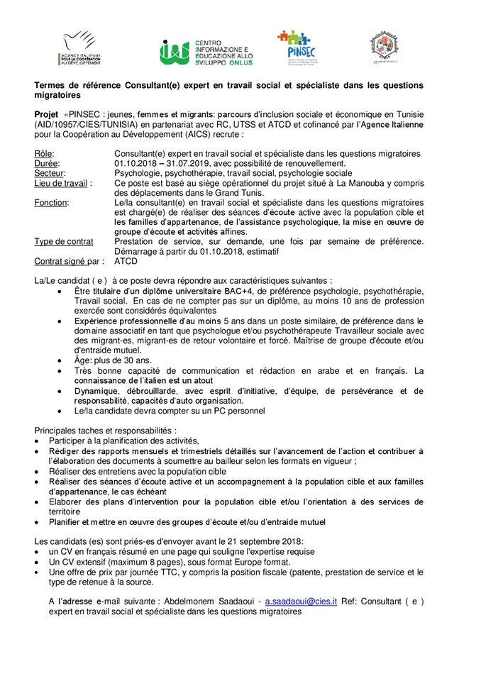 avec la Réf: Consultant (e) expert en travail social/psychologie et spécialiste dans les questions migratoires.