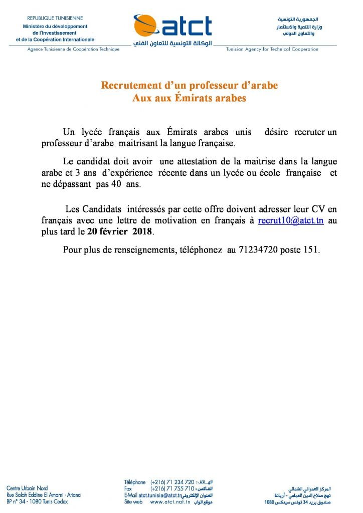 Recrutement d’un professeur d’arabe