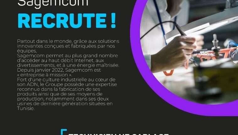 Read MoreSagemcom 𝐫𝐞𝐜𝐫𝐮𝐭𝐞 dans le cadre du développement de ses activités : Technicien câblage (F/H) 🟣𝐏𝐫𝐨𝐟𝐢𝐥𝐬 : : Diplôme : BTS ou BTP en électrique, électromécanique, mécatronique Expérience : Débutant 📍 Ben Arous Tunis…