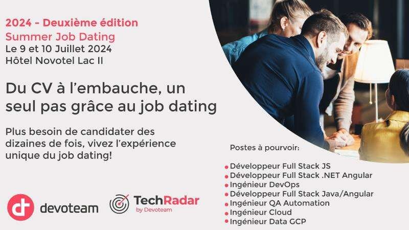 - Rejoignez-nous pour une journée de rencontres avec des experts Devoteam renommés et décrochez l’opportunité qui vous permettra de développer avec nous votre carrière au Summer Job Dating.