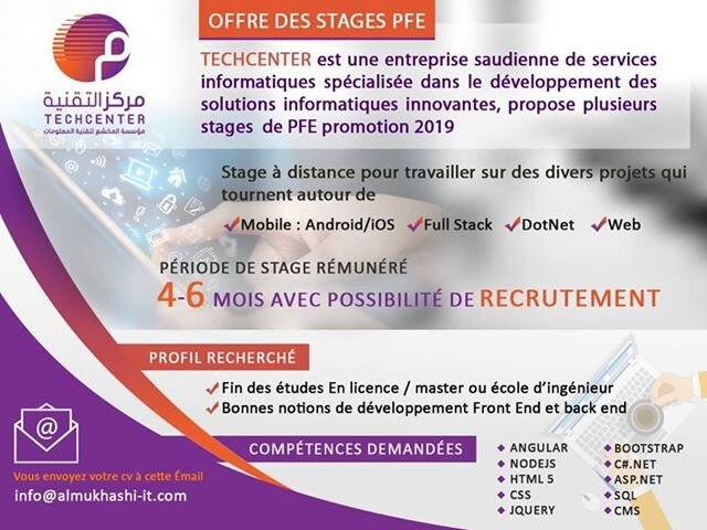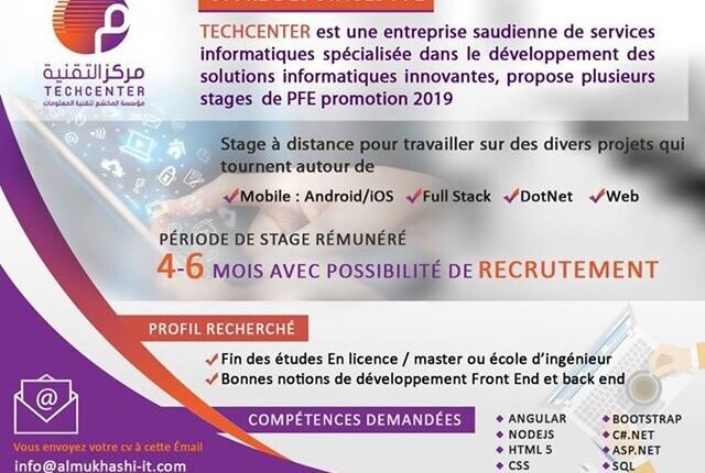 TechCenter // propose des [STAGES PFE] Annonces, Stages / PFE S’abonner à notre NEWSLETTER Recevoir tous les offres d'emploi ✅ Regarder la chaine à Recruter.TV TechCenter propose des [STAGES PFE] S’abonner à notre NEWSLETTER Recevoir tous les offres d'emploi ✅ Regarder la chaine à Recruter.TV Partager : Cliquez pour partager sur Facebook(ouvre dans une nouvelle fenêtre) Facebook Cliquez pour partager sur LinkedIn(ouvre dans une nouvelle fenêtre) LinkedIn Plus Cliquer pour partager sur X(ouvre dans une nouvelle fenêtre) X Cliquer pour envoyer un lien par e-mail à un ami(ouvre dans une nouvelle fenêtre) E-mail Cliquez pour partager sur WhatsApp(ouvre dans une nouvelle fenêtre) WhatsApp Facebook