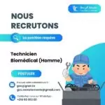 N’importe oùRecrutement : Technicien Biomédical La Clinique du Centre à Ksar Hellal recrute un Technicien Biomédical pour renforcer son équipe technique. 🎯 Profil recherché : ✅ Diplôme de technicien supérieur en…