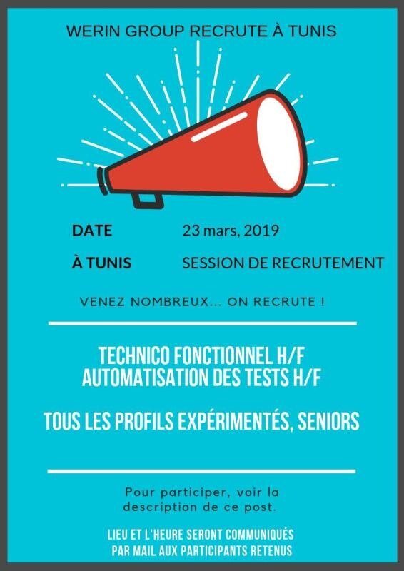 Venez rencontrer notre Directeur Commercial Reda Ennasr et nos équipes RH, à la Session de Recrutement « Industrialisation des Tests & Tests technico-fonctionnel » by WERIN GROUP.